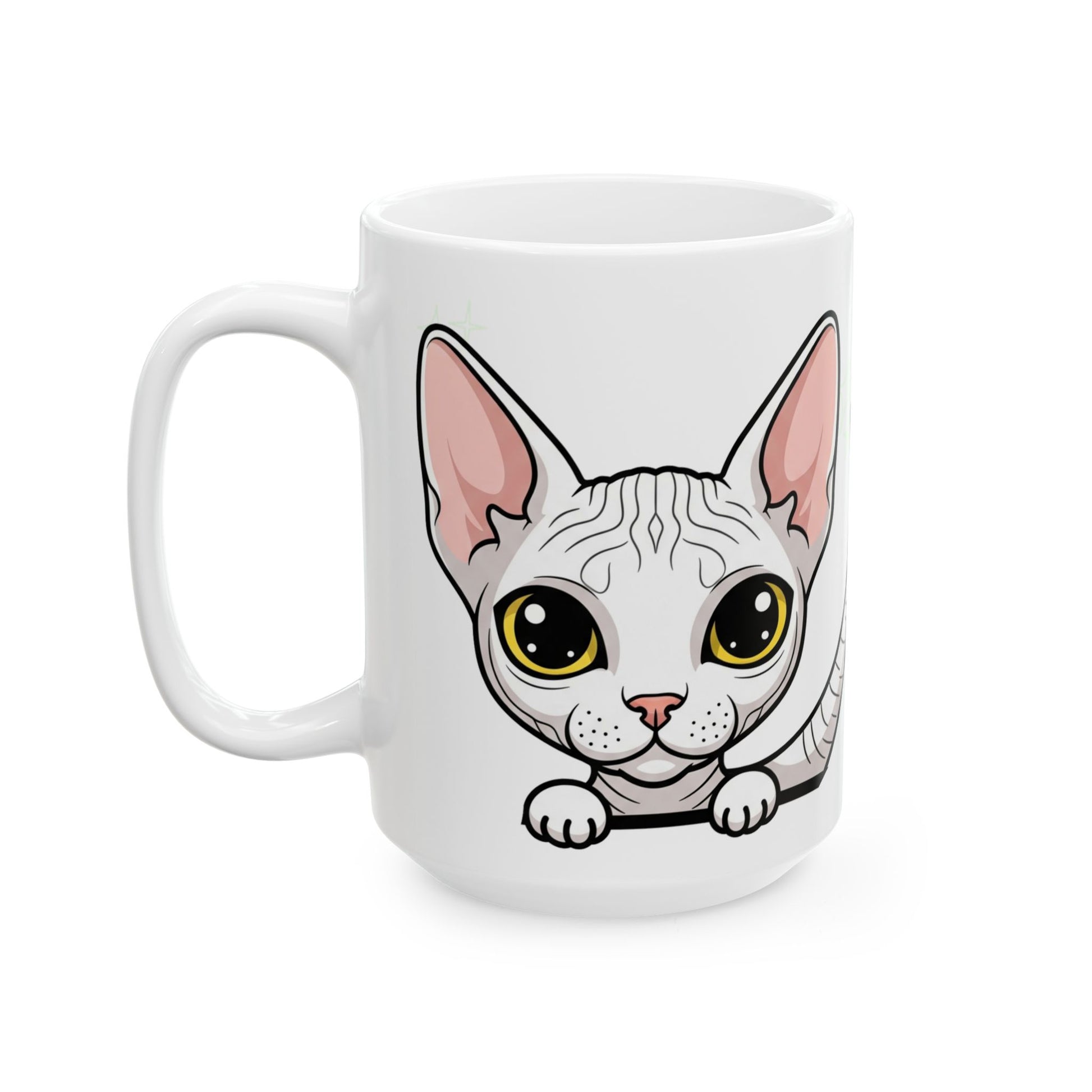 Perfect for Sphynx owners and breed fans who love to see their favorite furball every morning. This ceramic mug features an adorable peeping Sphynx design that celebrates your pet parent pride.