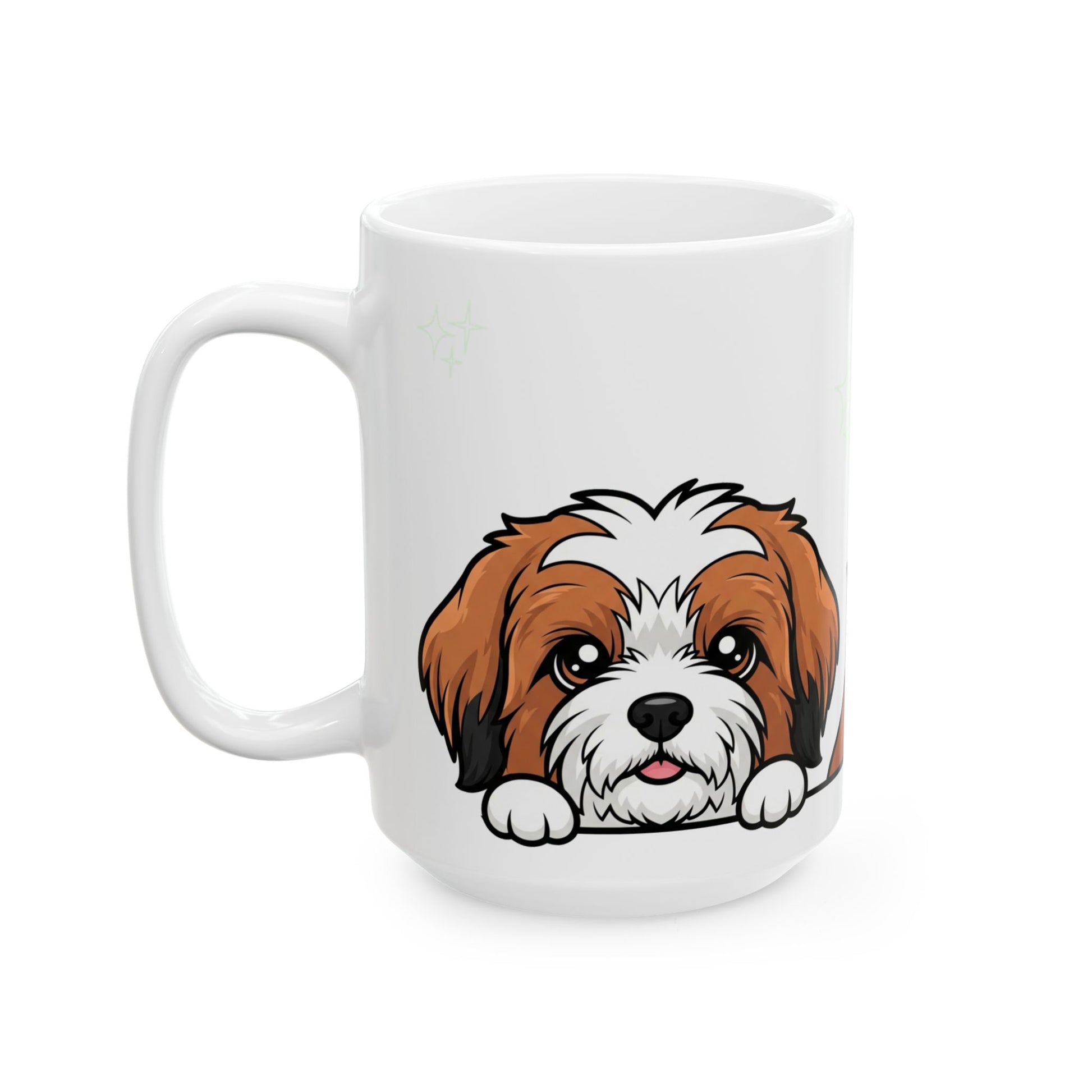 Perfect for Tibetan Terrier owners and breed fans who love to see their favorite furball every morning. This ceramic mug features an adorable peeping Tibetan Terrier design that celebrates your pet parent pride.