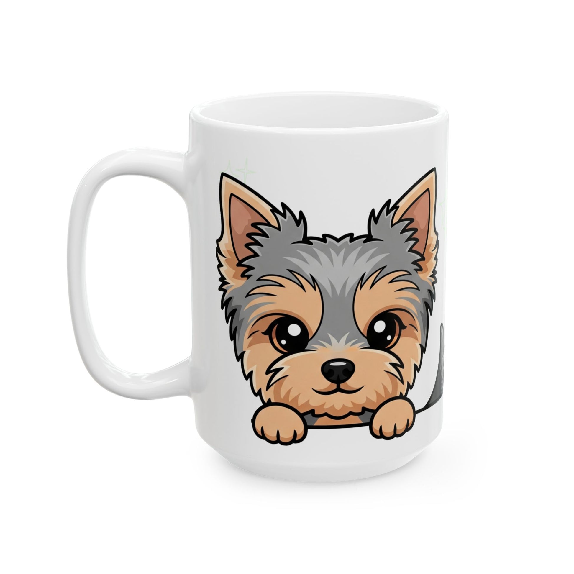 Perfect for Yorkie owners and breed fans who love to see their favorite furball every morning. This ceramic mug features an adorable peeping Yorkshire terrier design that celebrates your pet parent pride.