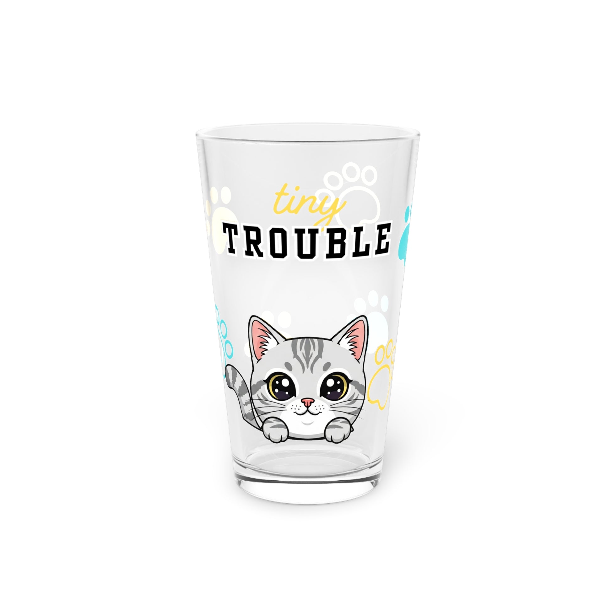Short hair silver tabby cat Tiny Trouble Pint Glass