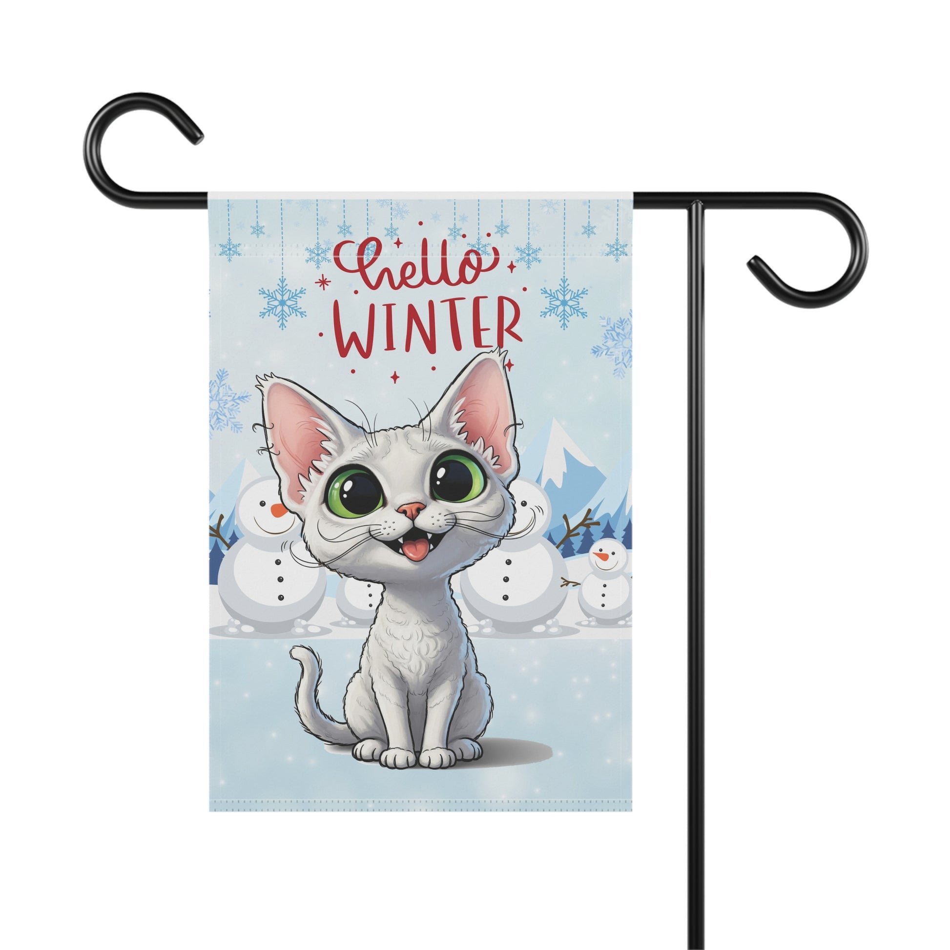 Celebrate cozy season with this festive Devon Rex garden flag. It’s the perfect way to greet guests and share your pet’s winter spirit — snowflakes, snuggles, and all. 🐾 100% poly poplin-canvas 🐾 Same design printed on both sides 🐾 Sleeve at top fits standard poles 🐾 Durable and weather-resistant Perfect Gift For: Winter lovers, holiday decorators, pet parents, and anyone who wants to make their yard extra merry.