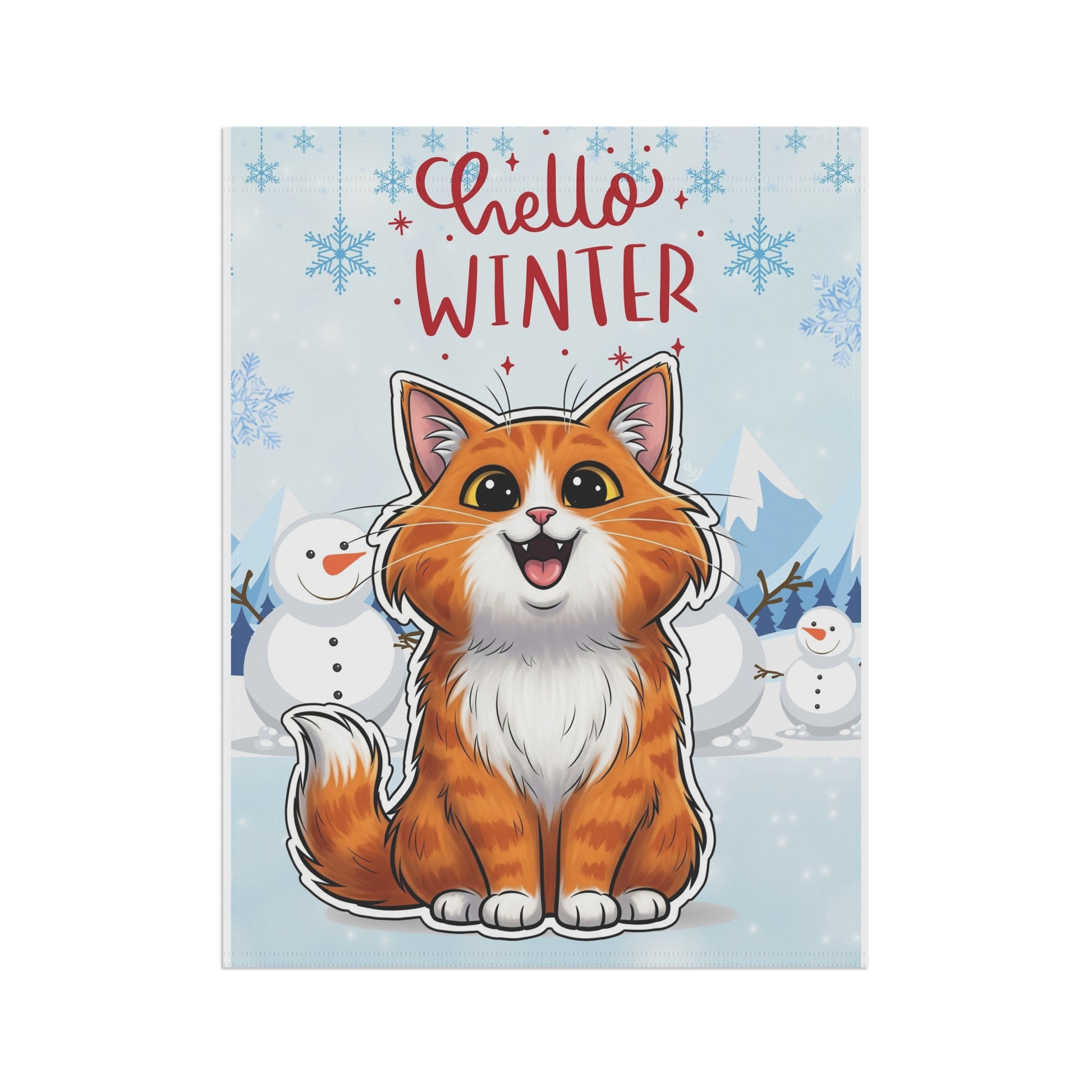 Long hair bi-color orange cat Hello Winter Garden Banner