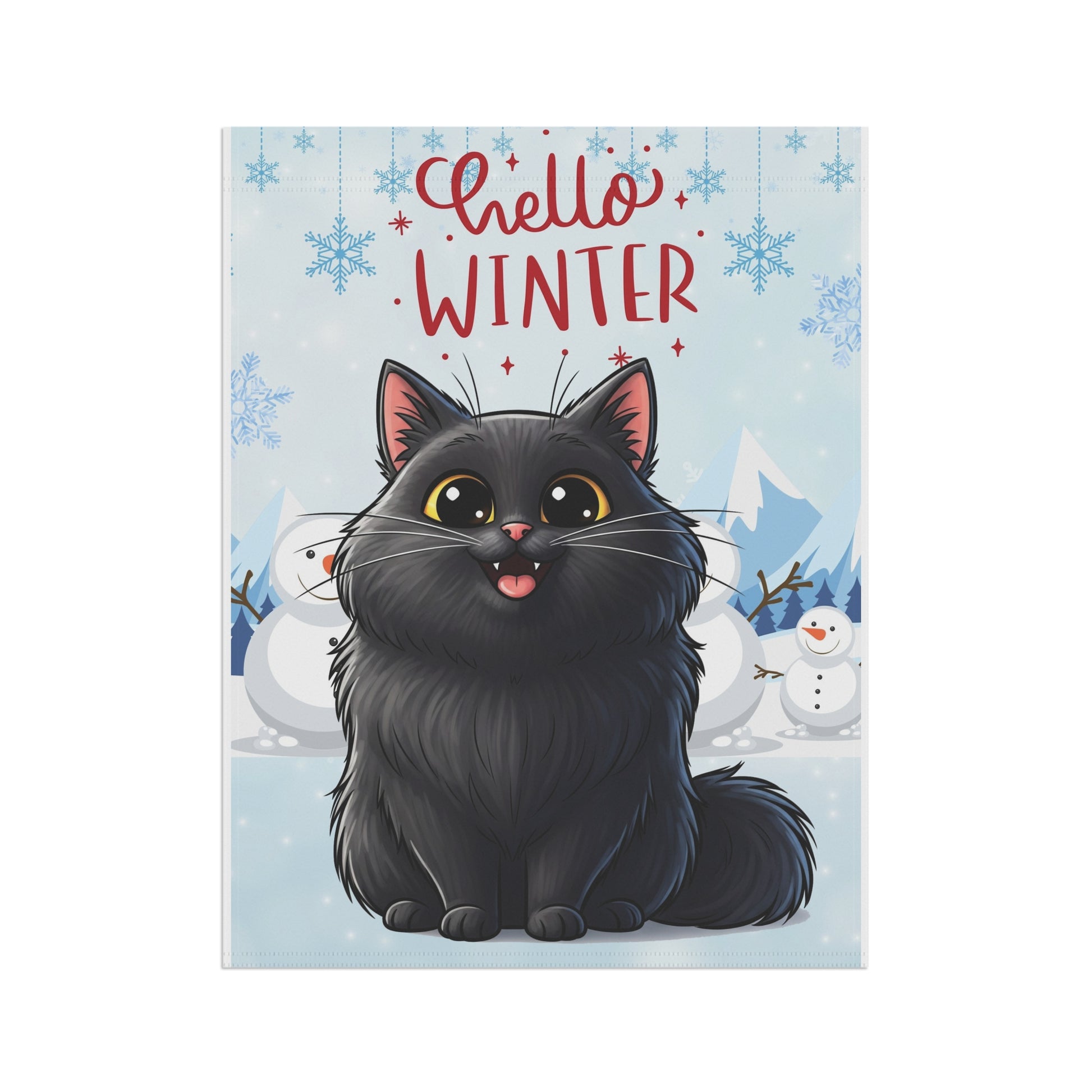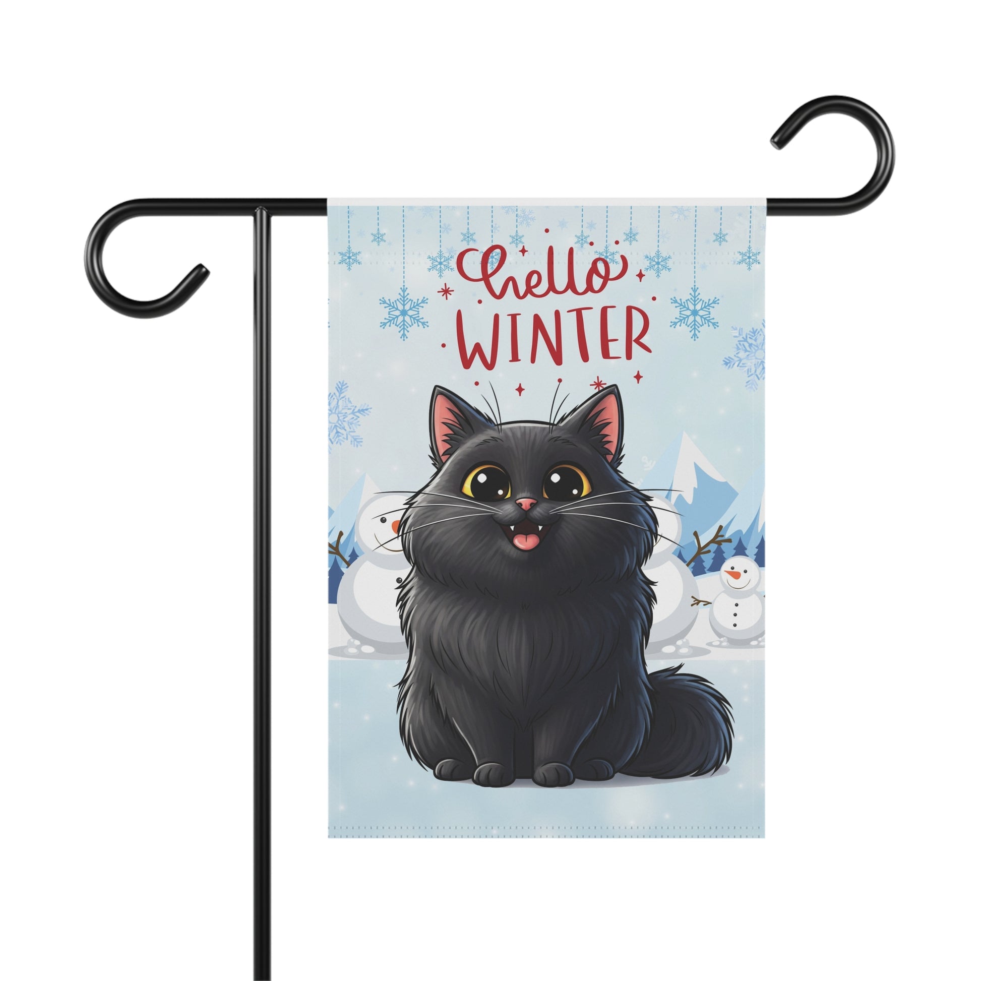 Long hair black cat Hello Winter Garden Banner