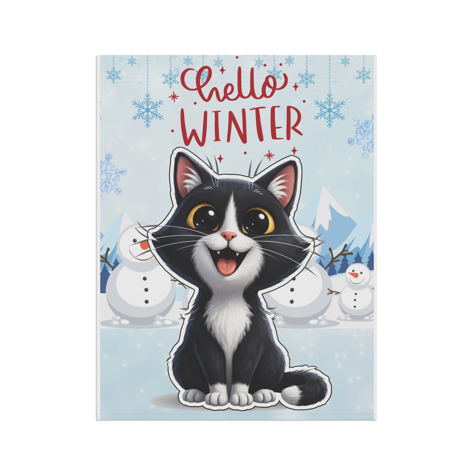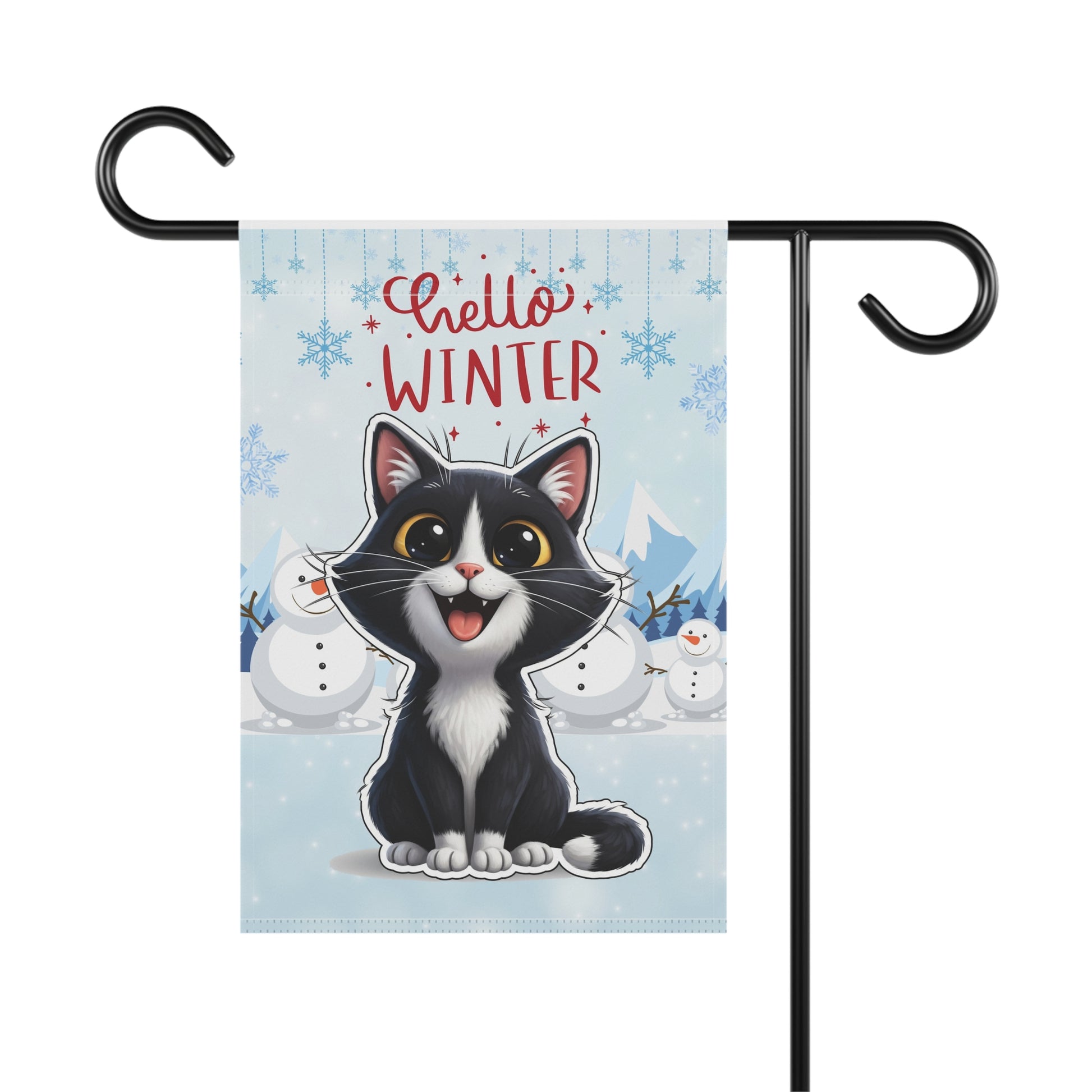Short hair tuxedo cat Hello Winter Garden Banner